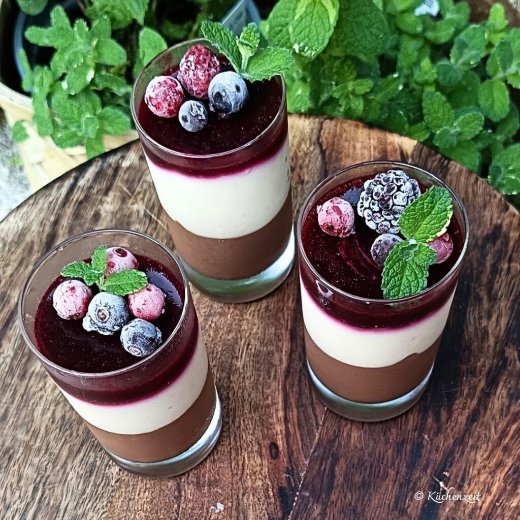 Ein erfrischendes und leichtes Dessert mit Seidentofu. Eine harmonische Verbindung aus zarter Schokolade und fruchtigem Beerenaroma. Das Rezept ist vegan, glutenfrei und laktosefrei.