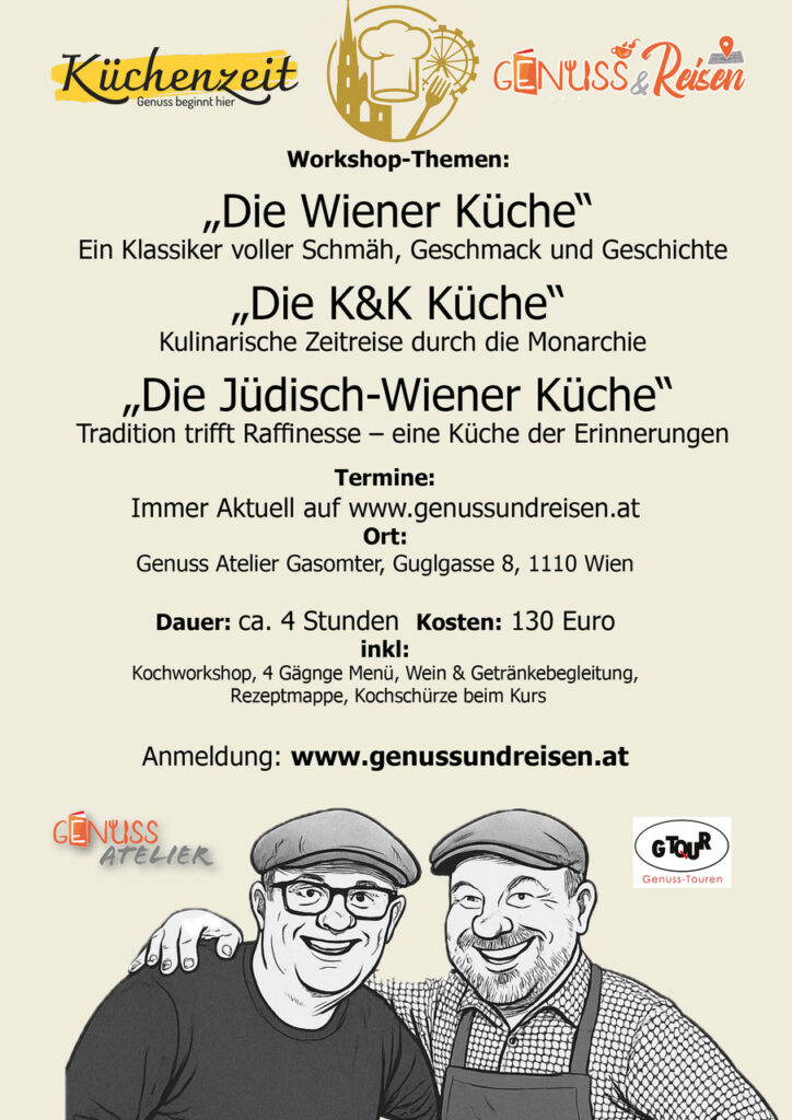 Kochkurs mit klassischen Wiener Rezepten • spannenden Geschichten aus der Küche • perfekt abgestimmte Weinbegleitung.